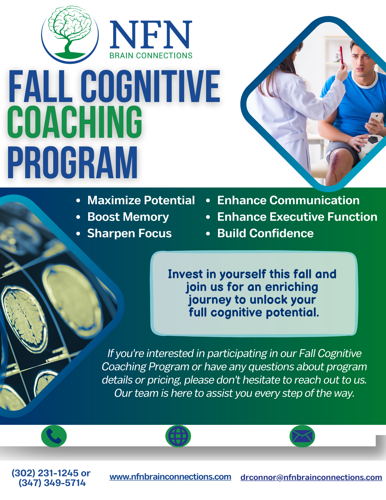 Cognitive Coaching is an important part of your recovery after a concussion, stroke, or brain injury. Your brain has the chance to “rewire” itself and relearn or compensate for cognitive and thinking skills that were damaged after an injury.